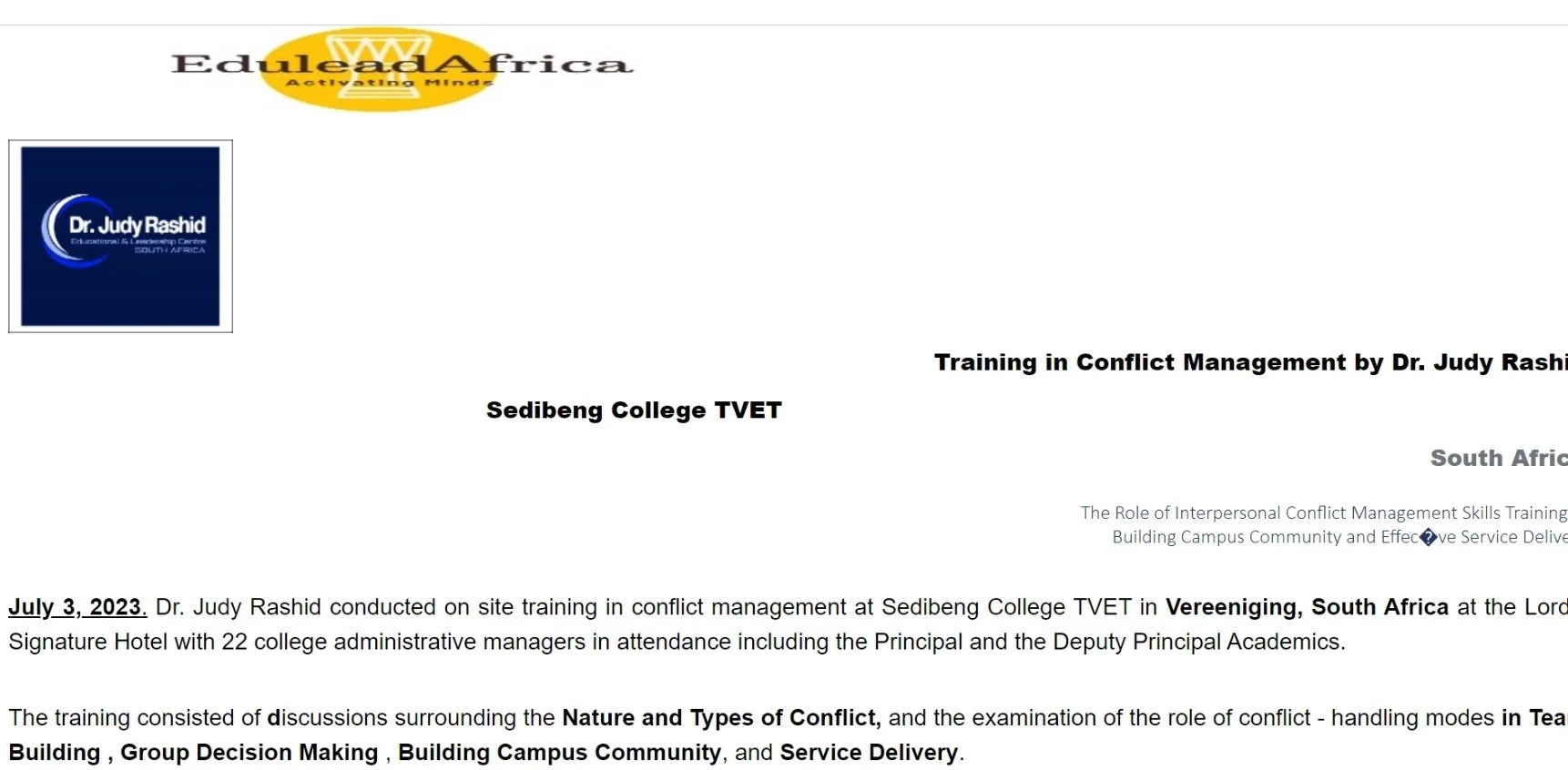 September 2, 2022 - On-line Student Training in Conflict Management with Sedibeng College Campuses, with South Africa and USA
